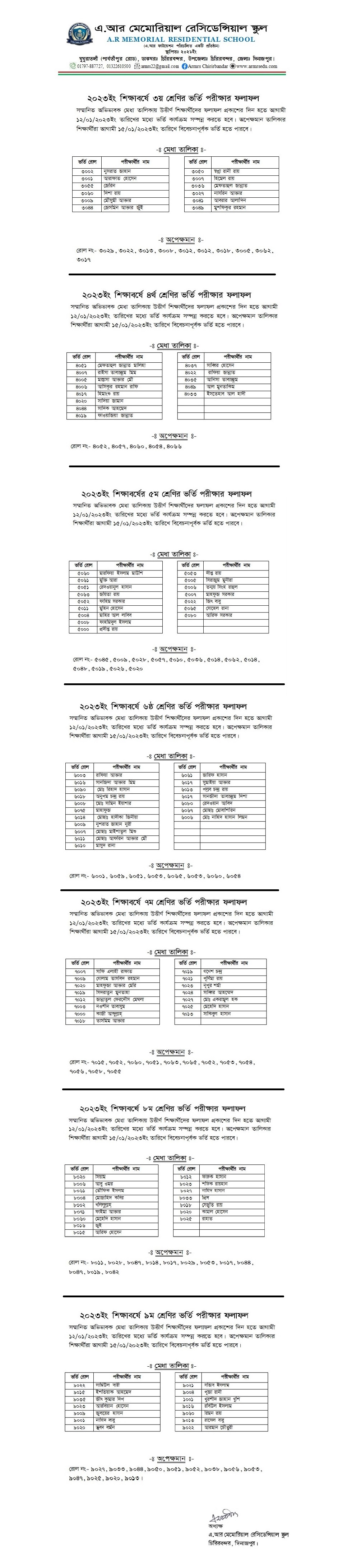 সম্মানিত অভিভাবক মেধা তালিকায় উত্তীর্ণ শিক্ষার্থীদের ফলাফল প্রকাশের দিন হতে আগামী ১২/০১/২০২৩ইং তারিখের মধ্যে ভর্তি কার্যক্রম সম্পন্ন করতে হবে। অপেক্ষমান তালিকার শিক্ষার্থীরা আগামী ১৫/০১/২০২৩ইং তারিখে বিবেচনাপূর্বক ভর্তি হতে পারবে।